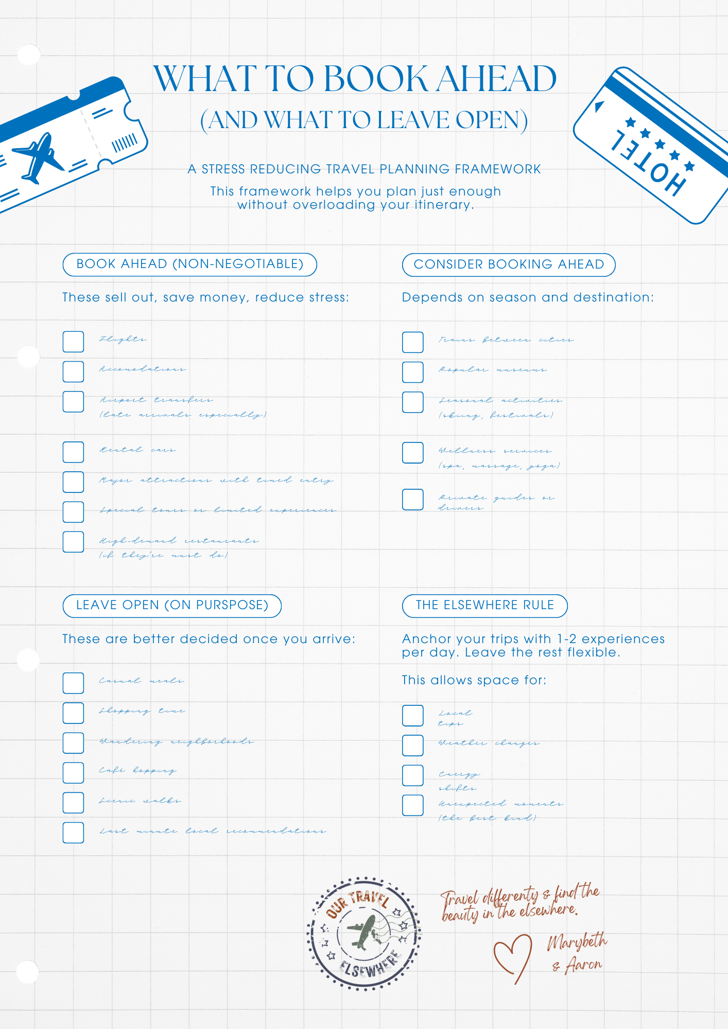 This guide helps you decide what’s worth locking in early—and what’s better left open. Learn how to plan just enough to feel prepared, while leaving room for spontaneity, local recommendations, and unexpected moments that make a trip memorable.